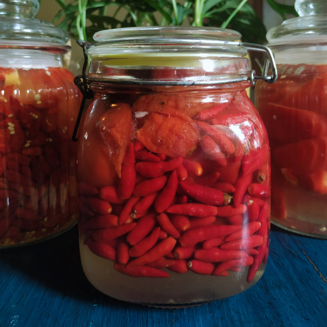 A complex and intensely flavourful chilli oil which captures the true essence of Ghost Chillies (Bhut Jholokia) with an extra dose of Umami from dried shrimp and the prized Changpang Ngatsu (fermented crabs and black sesame seeds), a well kept Naga secret.